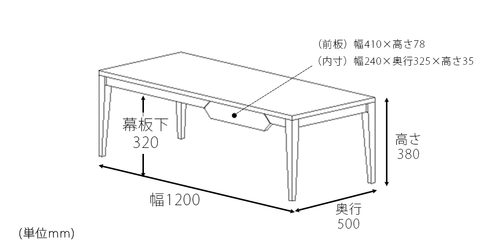 | 引出し付タイプ(奥行500) | 幅1200×奥行500×高さ380 |