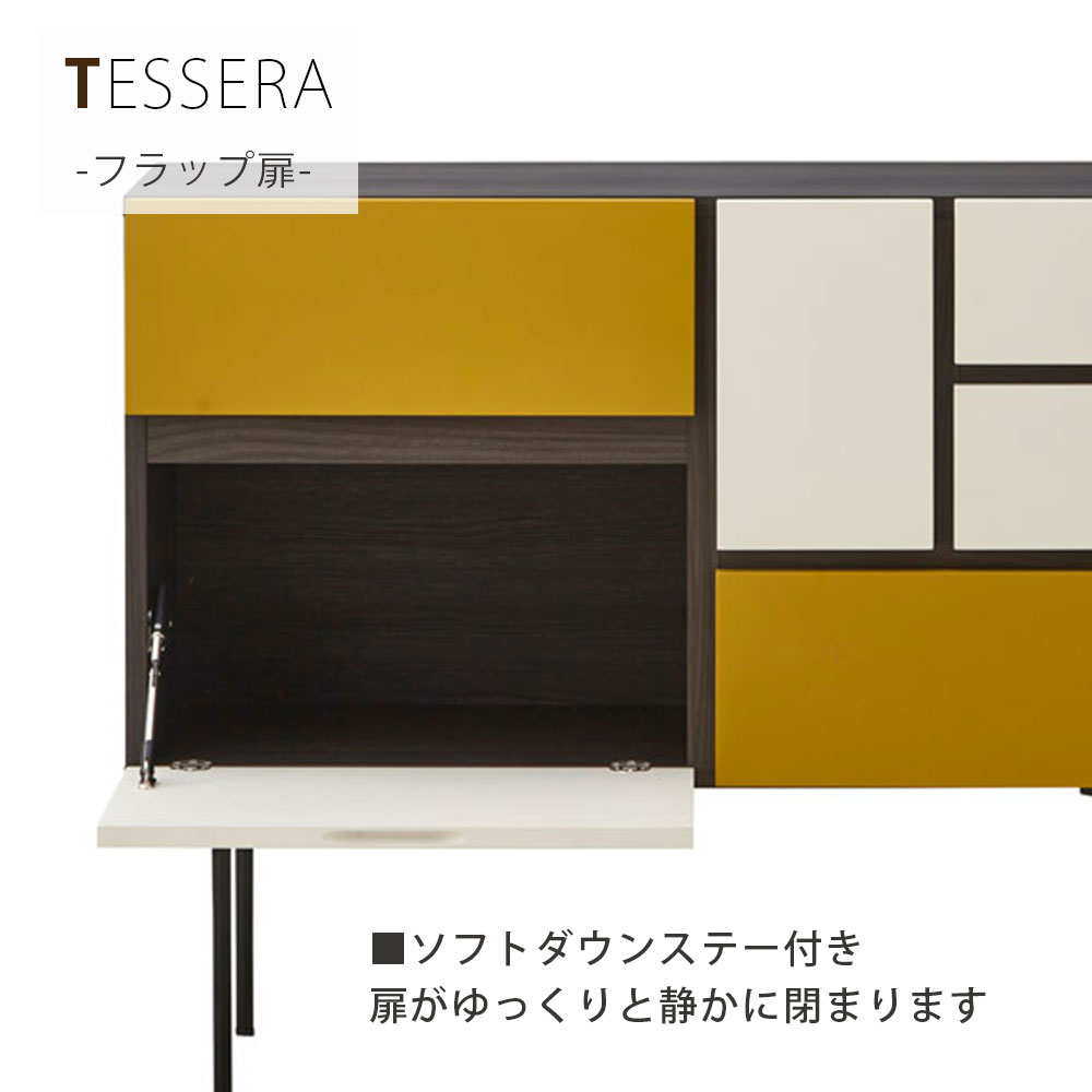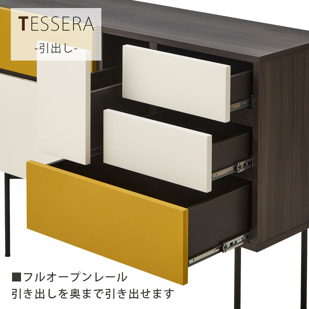 TESSERAシリーズは、テーブルからサイドボードまで、空間全体をコーディネートできるデザインが魅力です。洗練されたカラーバリエーションは、既存のインテリアにもしっくり馴染み、コーディネートの幅が広がります。※画像はシリーズのイメージです。