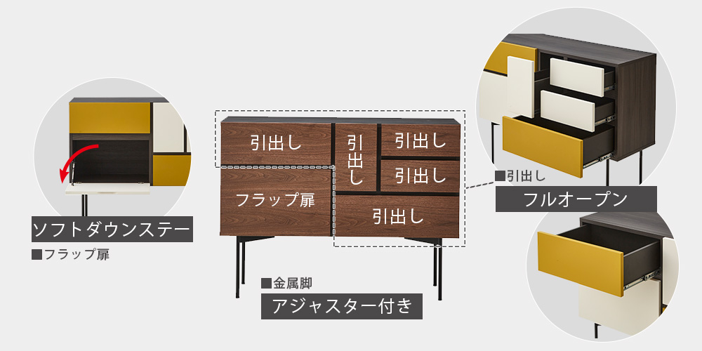 サイドボード「テセラ 115」幅115.2cm 全2色【受注生産品】