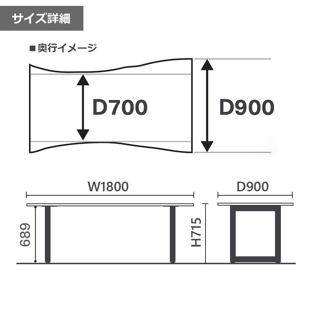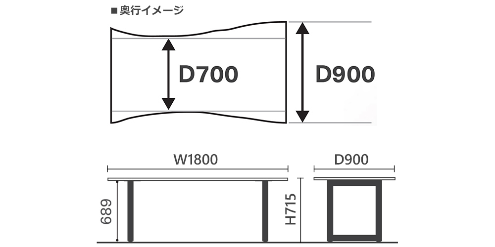 幅1800x奥行700〜900x高さ715