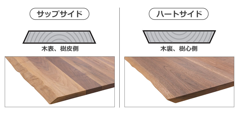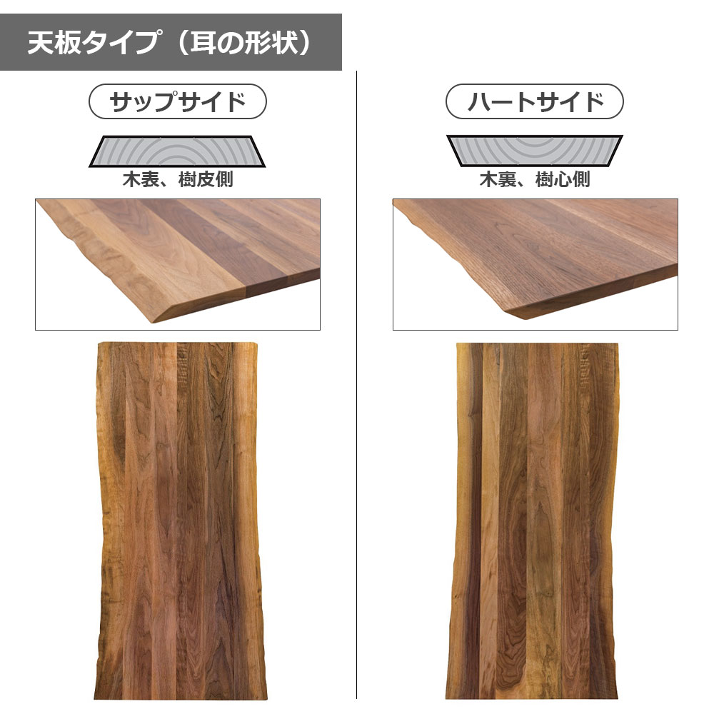 天板はサップサイド、ハートサイドの2タイプよりお選びいただけます。