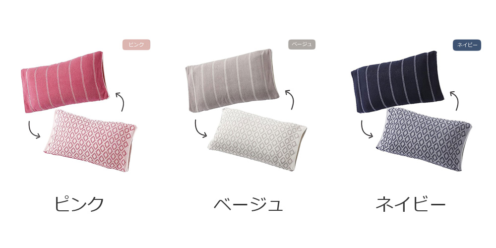 ピンク、ベージュ、ネイビーの3色展開。表・裏と2種の柄になっています。