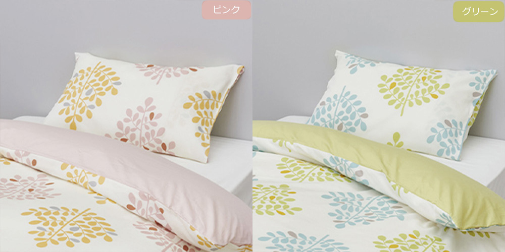 優しいカラーリングで寝室を彩ります。ナチュラルなツリーモチーフが、爽やかな朝を迎えられそうな寝室を演出します。