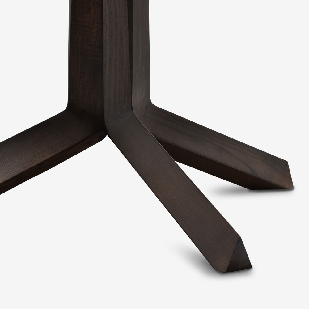 巧みな技を駆使して細工された脚は、三角形のアッシュ材をつなげて1本脚にみせた印象的なデザインです。
