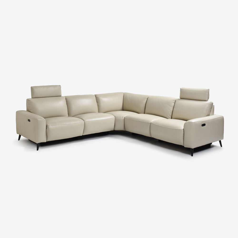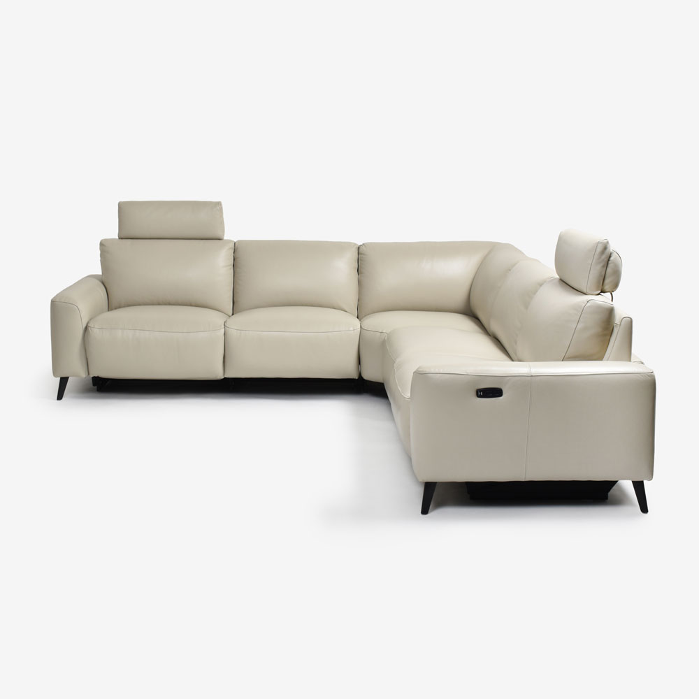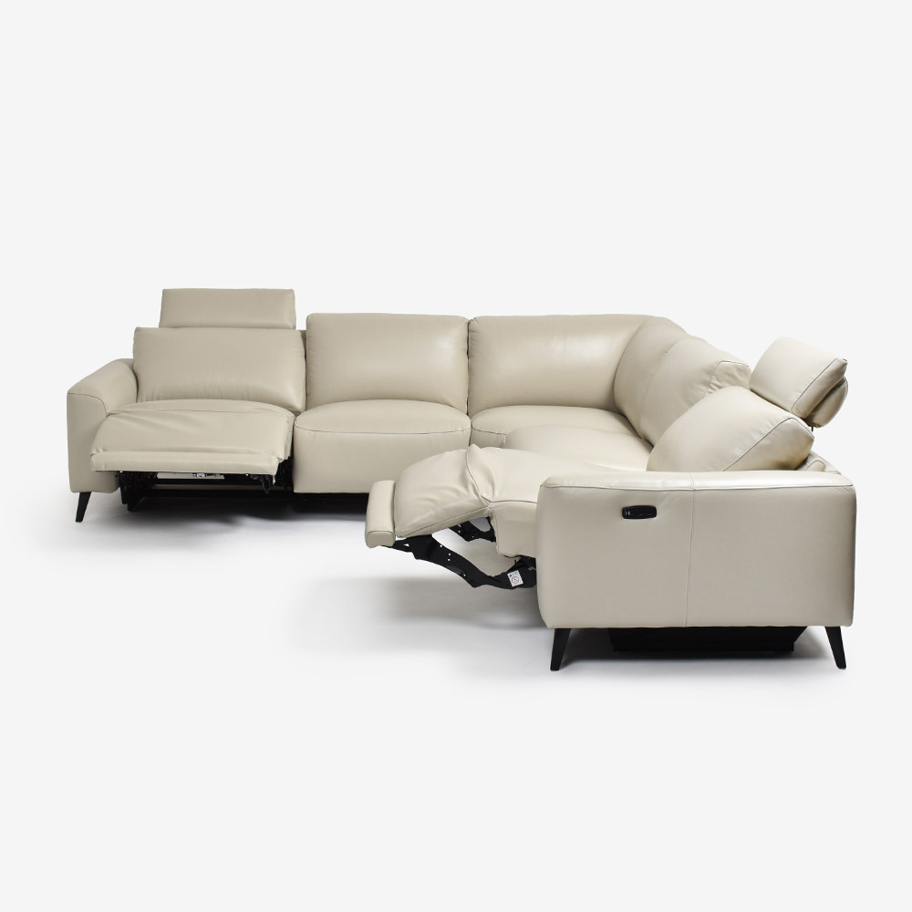 洗練されたデザインに快適なリクライニング機能を兼ね備えた、電動リクライニングコーナーソファ。座面や背もたれには継ぎ目のない一枚革を贅沢に使用し、シンプルながらも優雅さを感じるデザインが魅力的です。