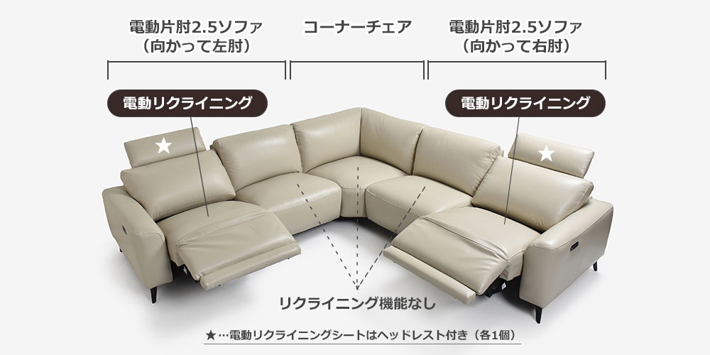 両端シートが電動リクライニングする3点セット