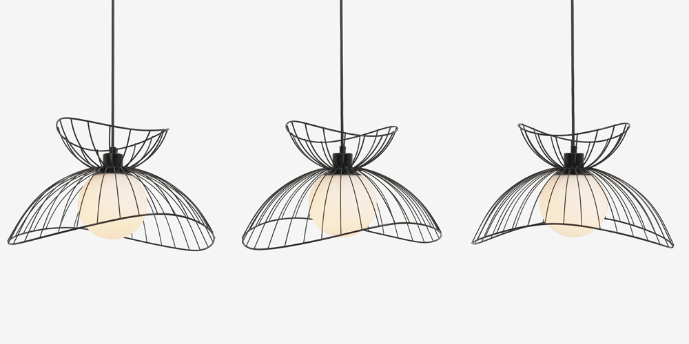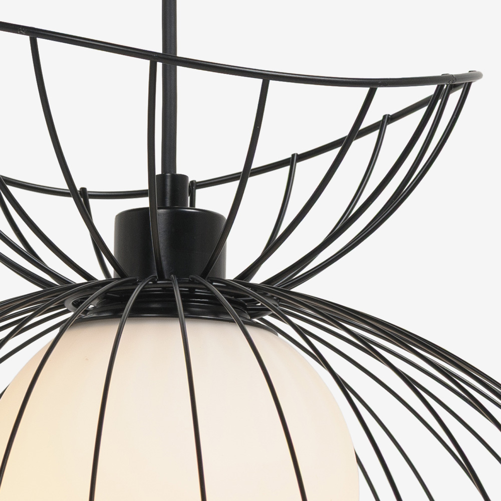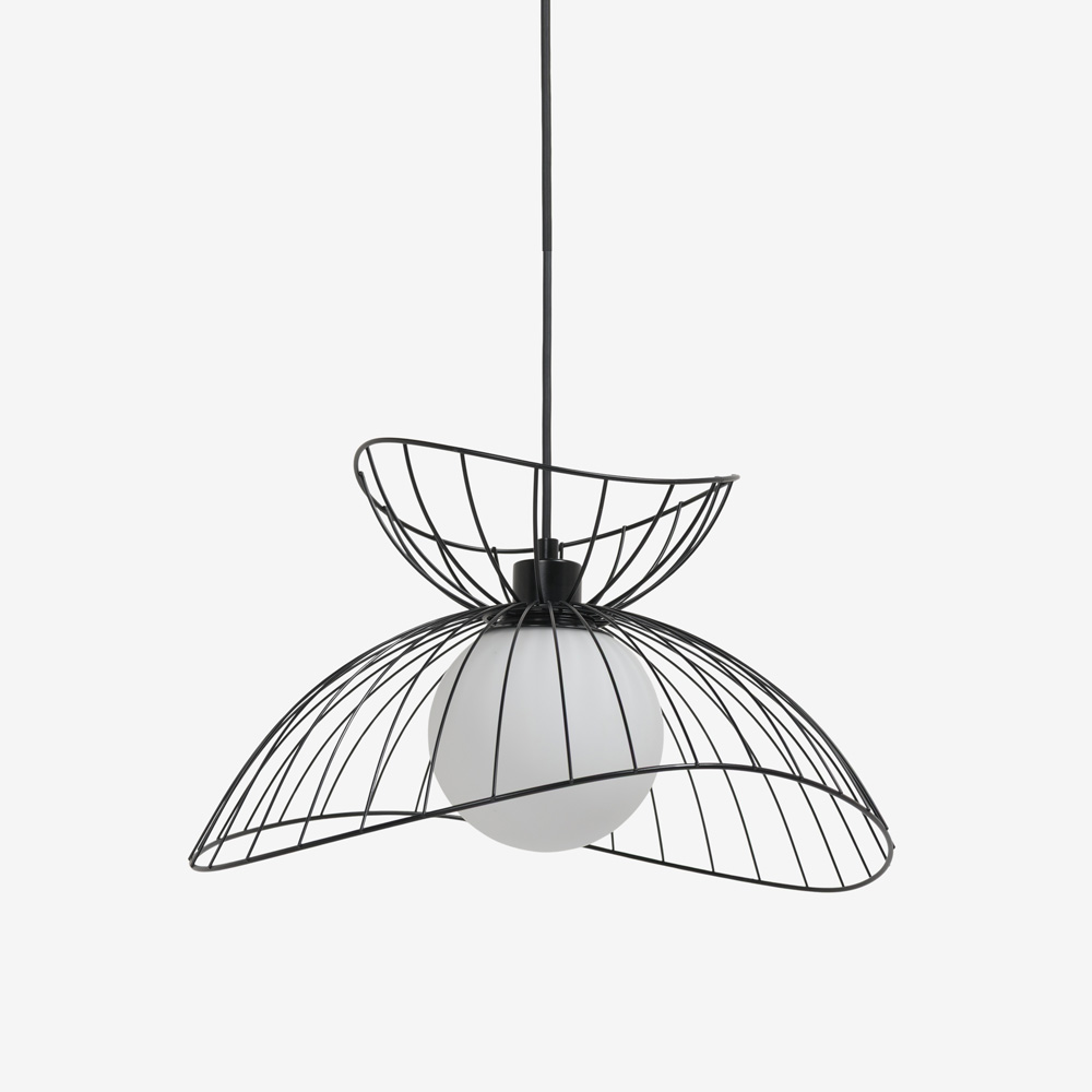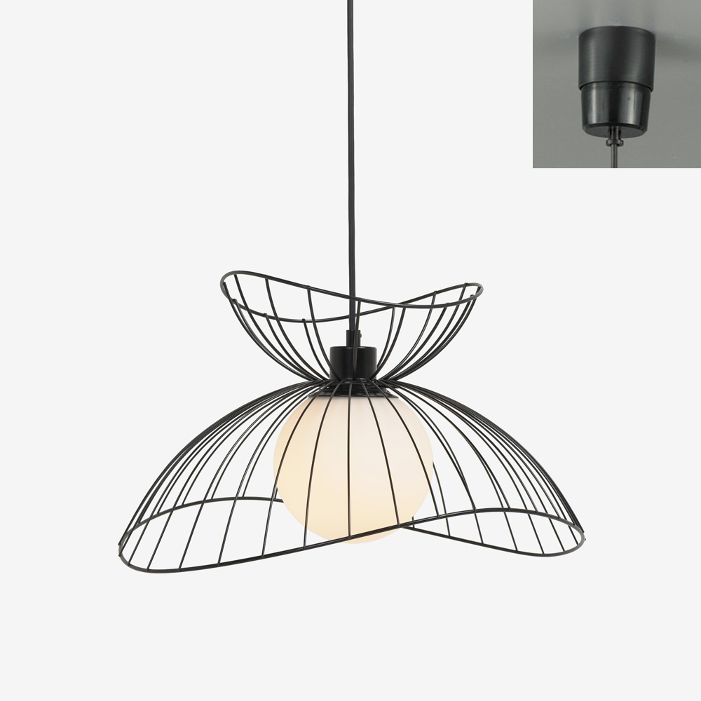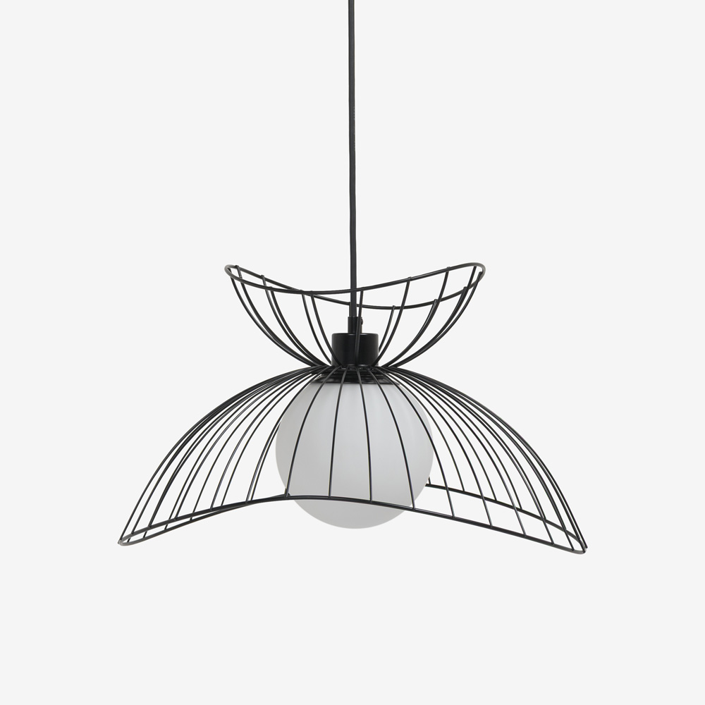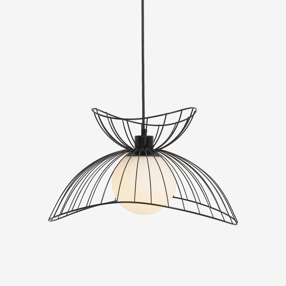 空間に浮遊する、軽やかなフォルムのデザインが印象的なペンダント。滑らかな曲線美が際立つワイヤーデザインは存在感抜群。シンプルモダンやナチュラルな家具と合わせると、空間のアクセントとして引き立ちます。