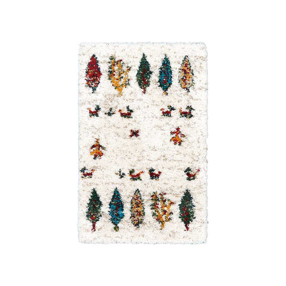 ふかふかで踏み心地が心地よい、ロングパイル(30mmカットパイル)の民族調デザインラグ「ハイク」。木々のモチーフと、人や動物の温かみのある柄が特徴です。ナチュラルテイストな空間のアクセントにもピッタリな一枚です。※画像は「IVO/160x230cm」のイメージです。