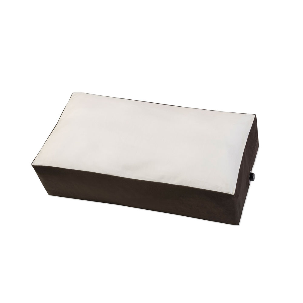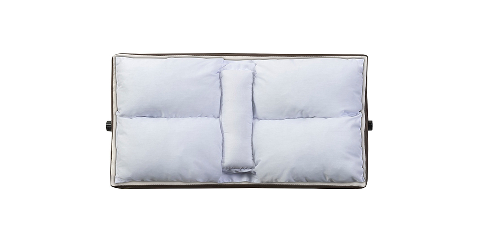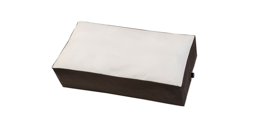 いびき博士・池松亮子先生の長年のいびき研究から生まれた「サイレントナイトピロー2」。寝たまま高さが調節できる画期的な枕で、いびきの出にくい横向きの姿勢を保ちます。