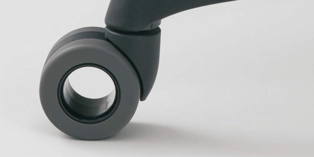 キャスターは床を傷つけにくいウレタン製です。空間に溶け込み、軽快感のある中空形状のキャスターを使用しています。
