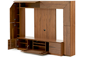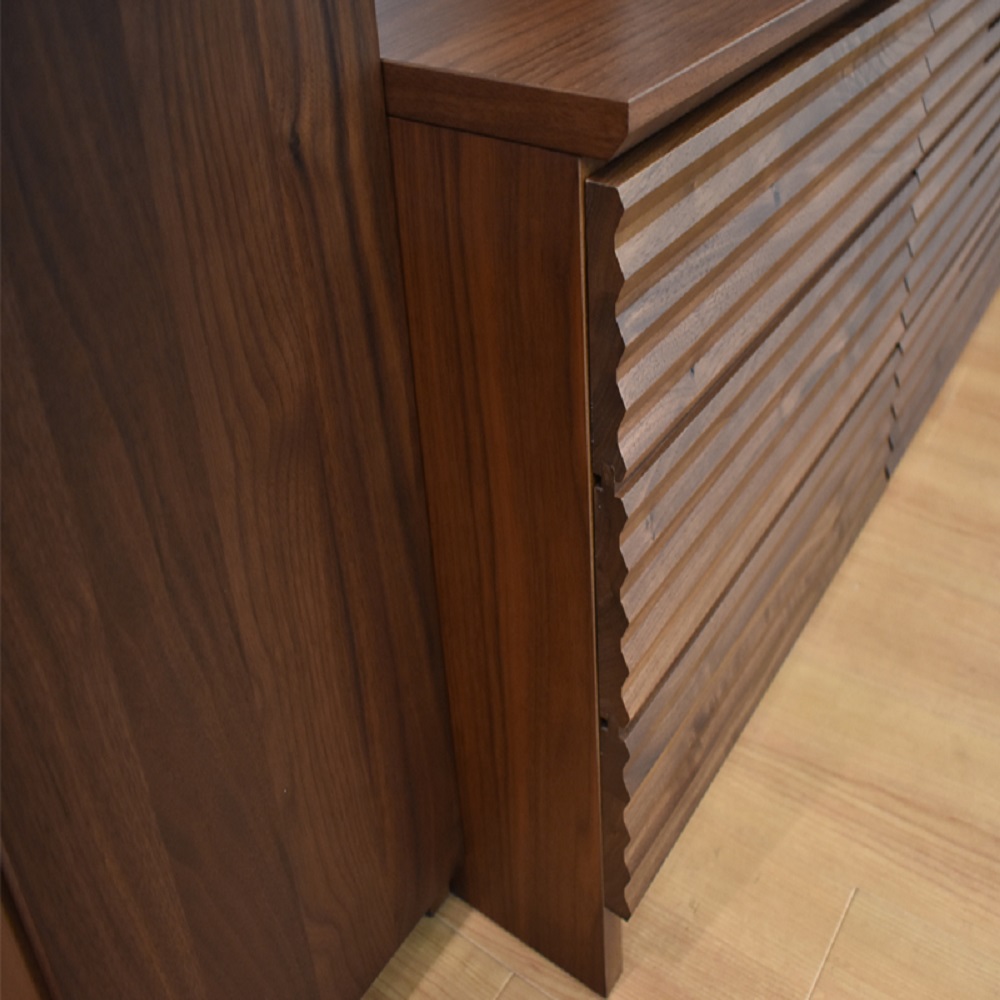 テレビ台の前板はモダンでスタイリッシュな印象となるスリットデザインになっています。凹凸があることで陰影が生まれ、無垢材の持つ豊かな表情を楽しむことができます。