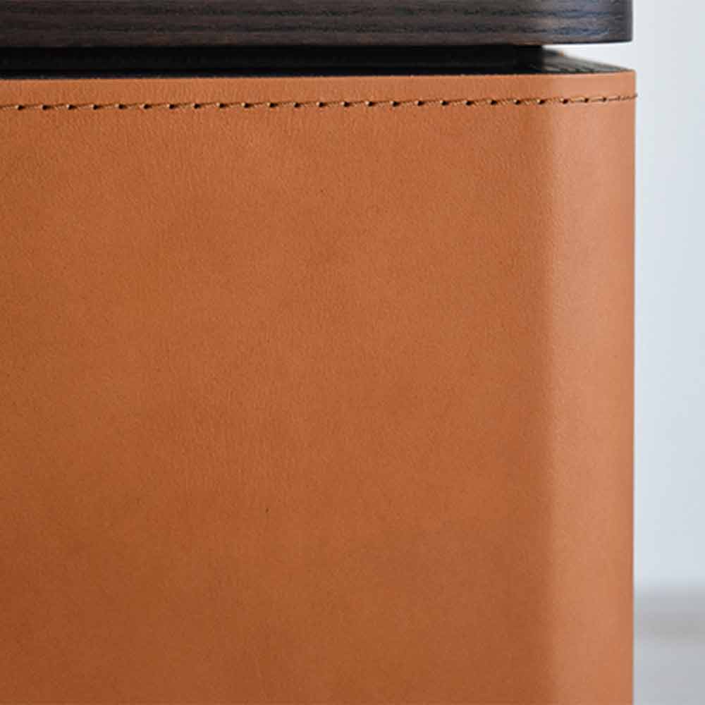 引出し底にも革を使用しており、フラウ社のこだわりが見受けられます。