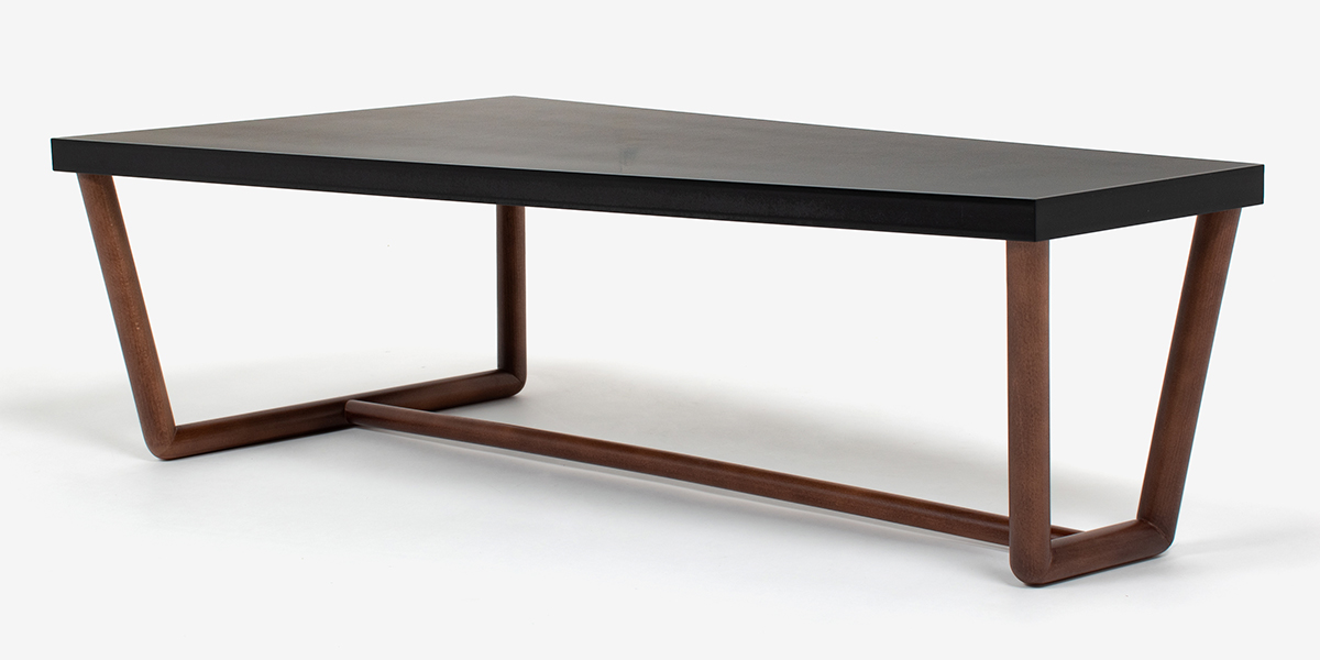 秋田木工 センターテーブル「KODトラペツィオ」 ナラ材ブラック/ウォールナット色