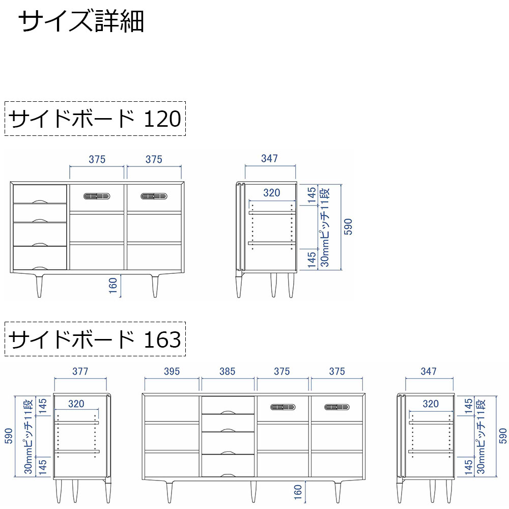 | サイドボード 163 | 幅1630x奥行420x高さ800 |