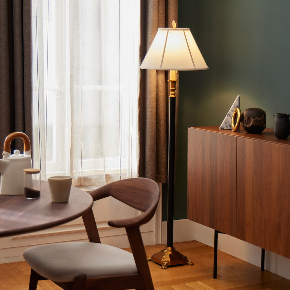 古美色仕上げの真鍮がアクセントになった、アンティーク調の美しいフロアスタンド。