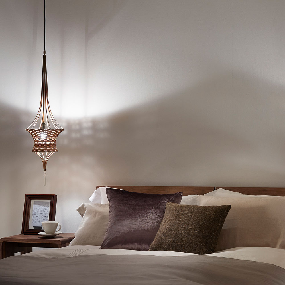 革織りの重なりからこぼれる光のグラデーションはベッドサイドを優しく照らします。※画像はイメージです。