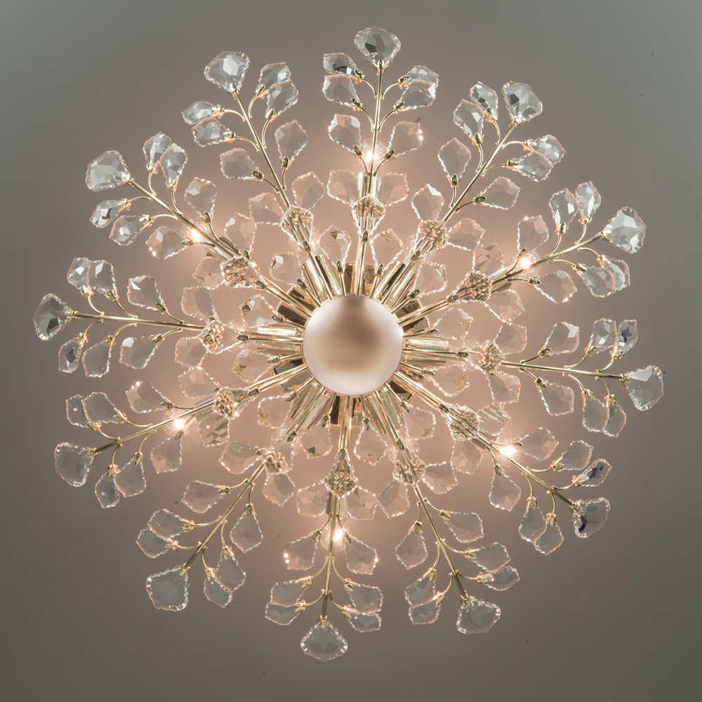 クラシックとモダンが融合したエレガントなデザインのシーリングライトです。大小のクリスタルを身にまとったその佇まいは気品にあふれ、空間を華やかに演出します。※画像は同シリーズサイズ違いの「FAS-マルケッサSCH/60G」を使用しています。