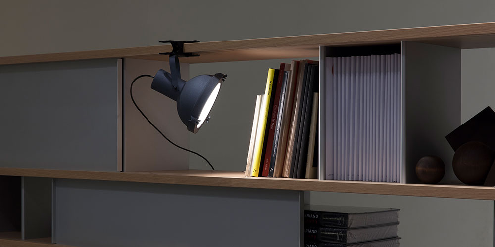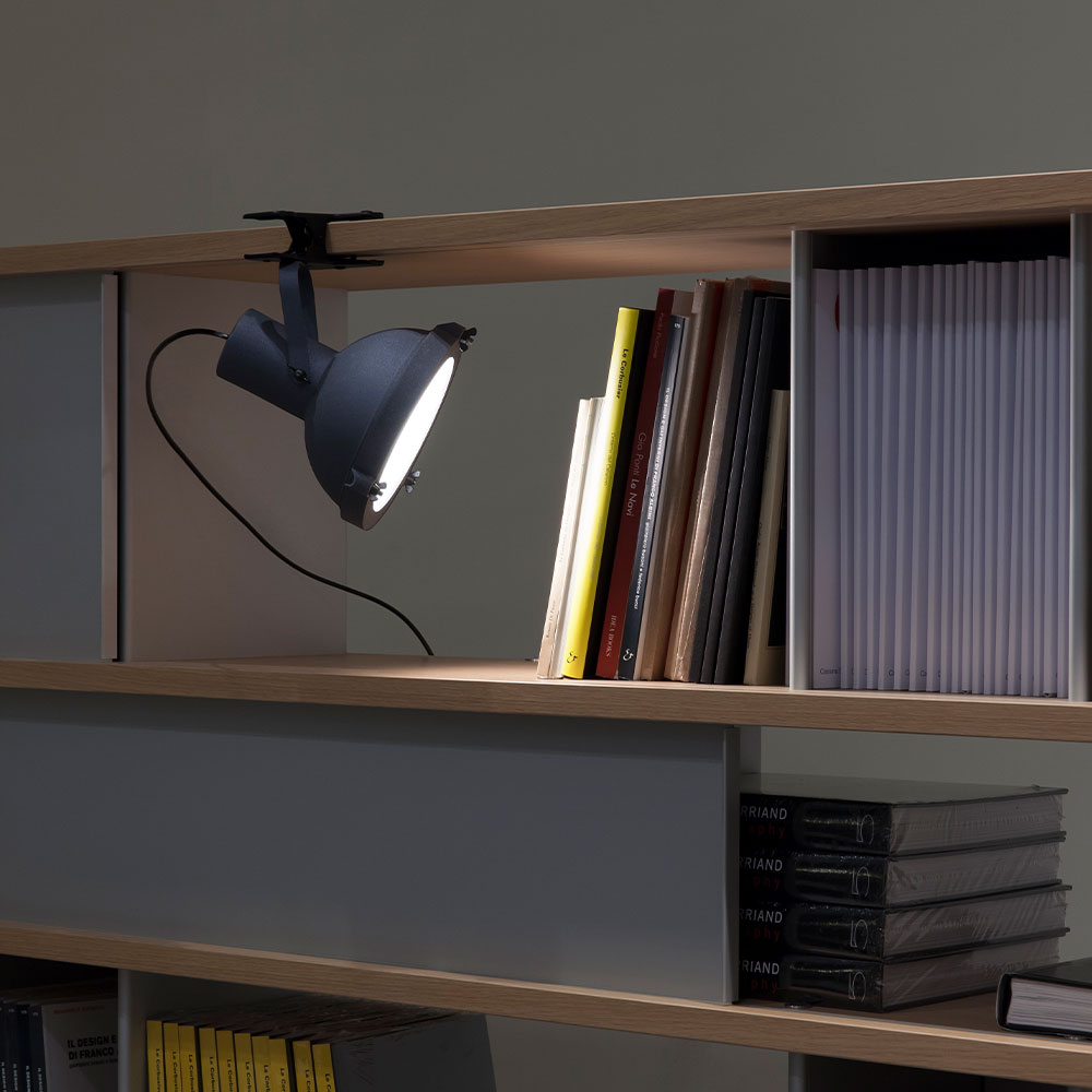 クリップ式で書棚やヘッドボードへ設置可能。角度を変えられ、お好きなところを自在に照らします。