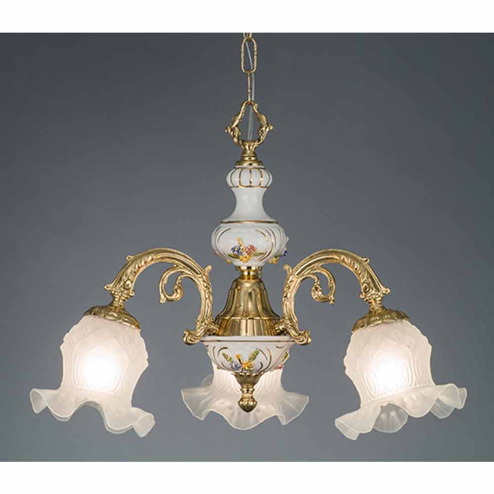 真鍮・陶器・ガラスの組合せが優雅なシャンデリア。