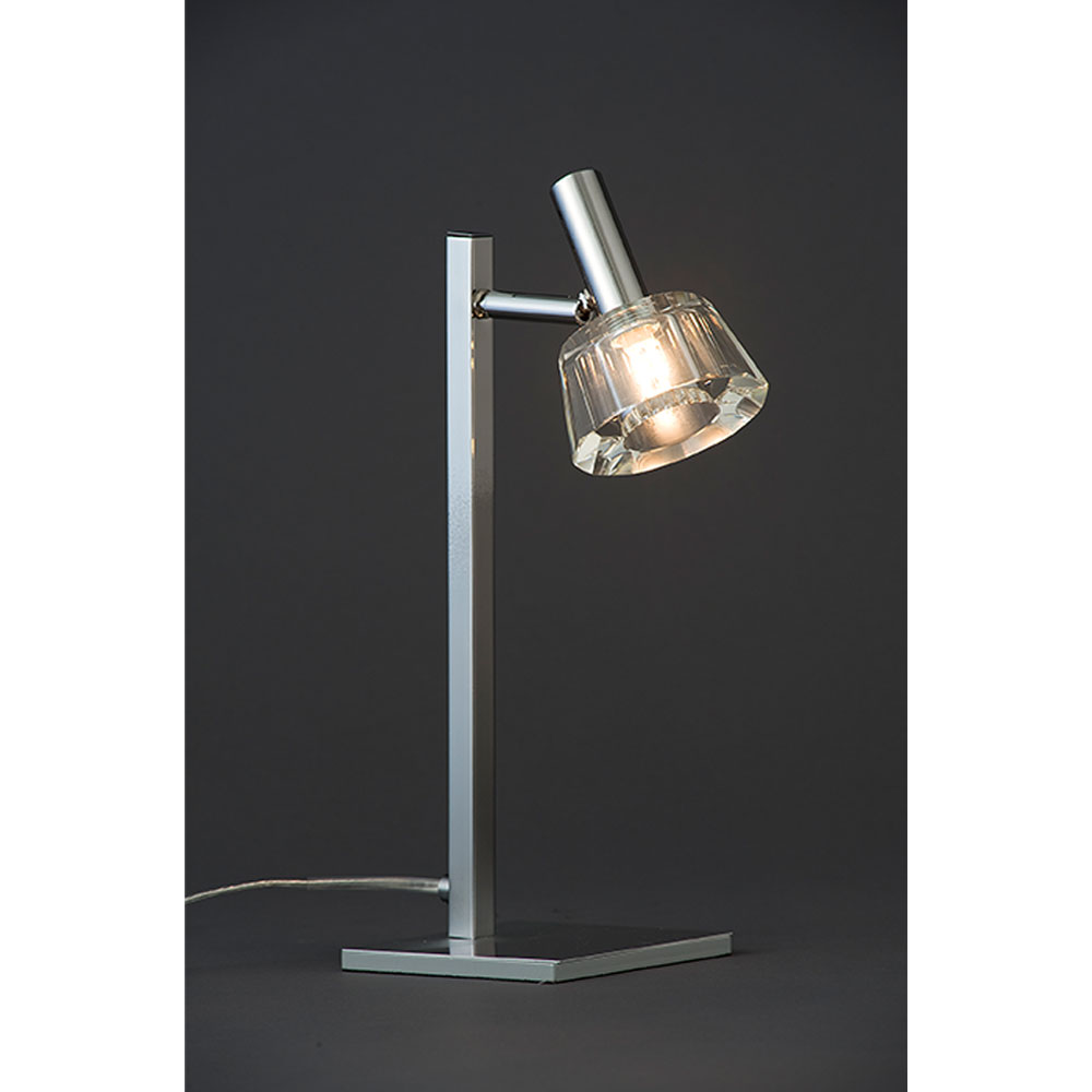 セードに使用されている光学ガラスは一般的にはカメラのレンズに用いれれており、限りなく無色透明でひずみのないほぼ完璧に近いガラスといわれています。ランプの光を受け、クリスタルのように美しく輝きます。セードの角度を変えることができるんで、あらゆる方向に光を当てることができます。