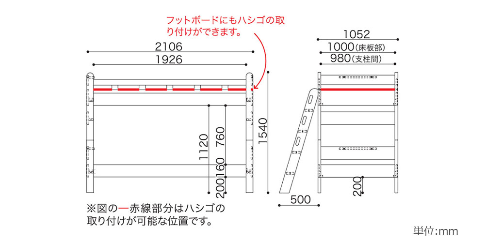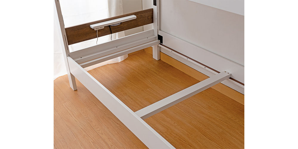 マットレスがずれないように、ヘッドボード・フットボードには着脱可能なスペーサーがあり、取り外せば睡眠スペースをより広くできます。