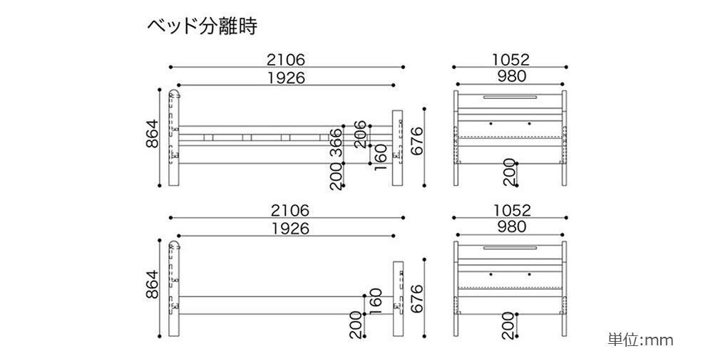 上下段を分割して使用することができるので、お子様の成長後2つに分けて別々のお部屋で使うことも可能です。※恐れ入りますが、画像のカラーは完売しております。