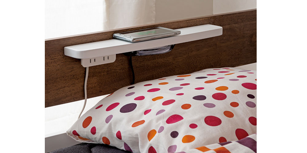 各段のヘッドボードには、LEDライトと、便利な2口コンセントが付いています。