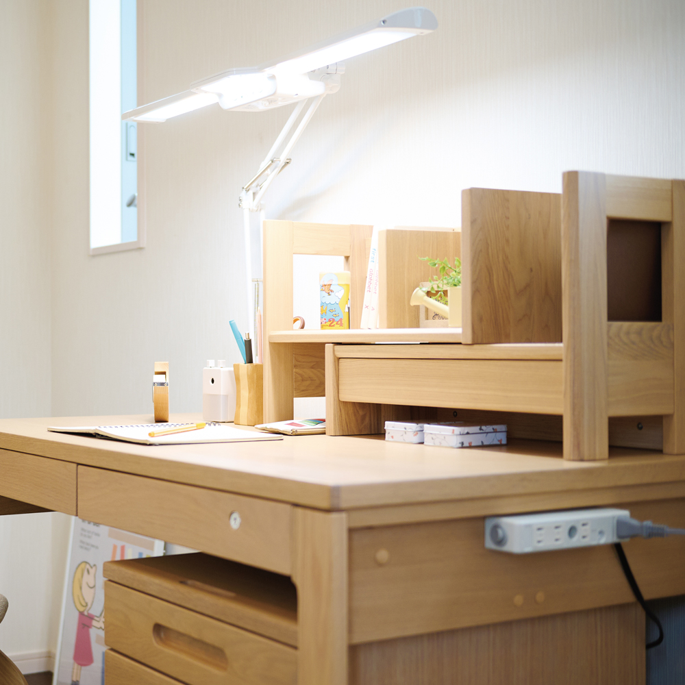 ビーノは様々なアイテムから必要なものを自由に組み合わせができるシンプルなデスクシリーズです。天板に高級感のあるナラ材を使用し、シンプルで大人になっても使い続けたいデザインに仕上げました。※画像はMO色のイメージです。
