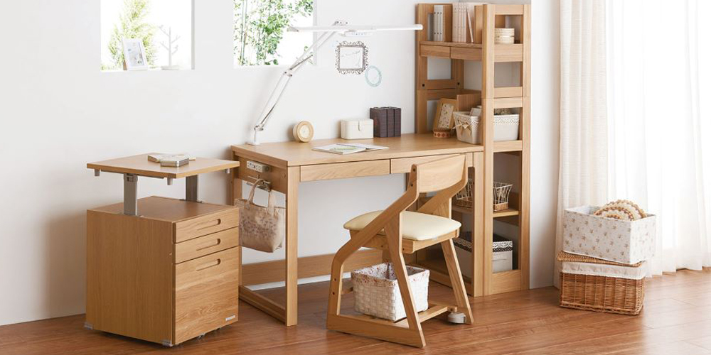ビーノは様々なアイテムから必要なものを自由に組み合わせができるシンプルなデスクシリーズです。天板に高級感のあるナラ材を使用し、シンプルで大人になっても使い続けたいデザインに仕上げました。※画像は色違いのイメージです。