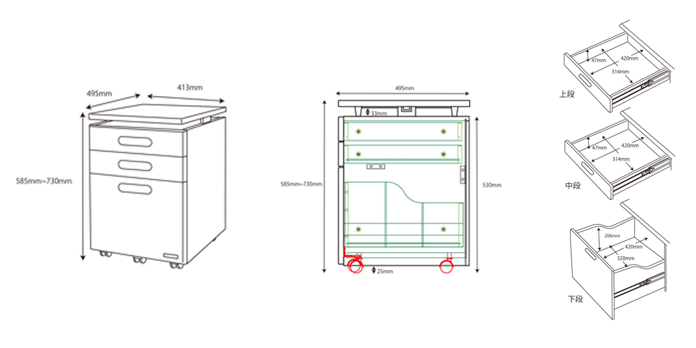 サイドチェスト「ビーノ BDB-167WT」WT色
