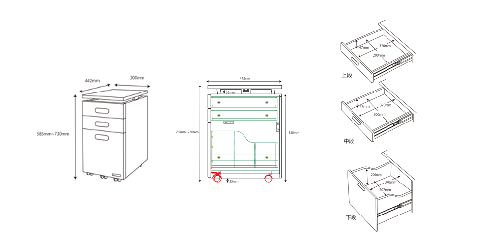 幅300x奥行442x高さ585〜730
