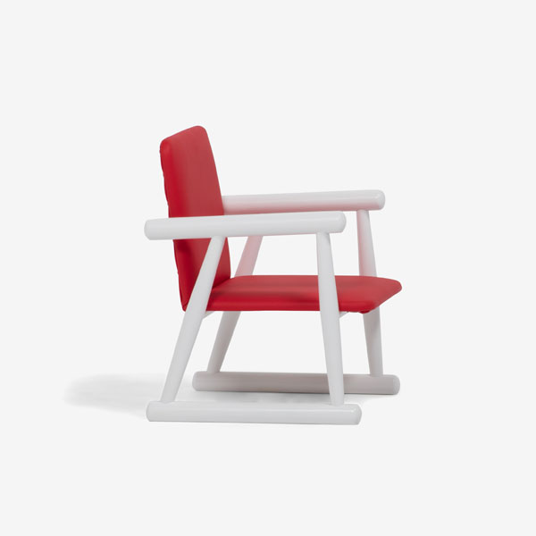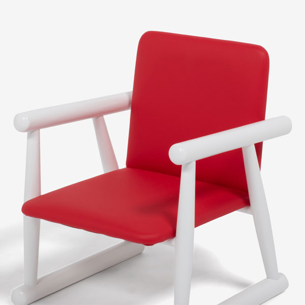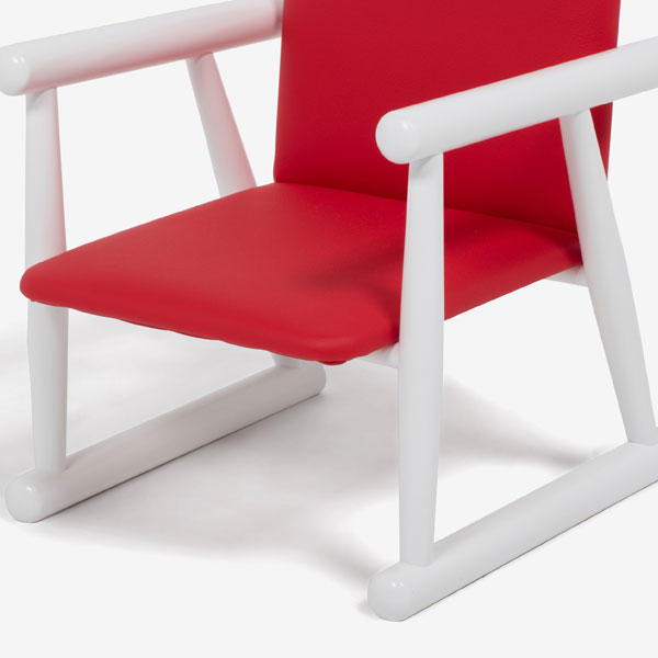 カラフルで丸みのあるフォルムがかわいらしく、曲げ木の技術を活かした製品なので、軽くて丈夫なのが特徴です。肘置きや脚を丸くデザインしたお子様にやさしいデザインになっています。