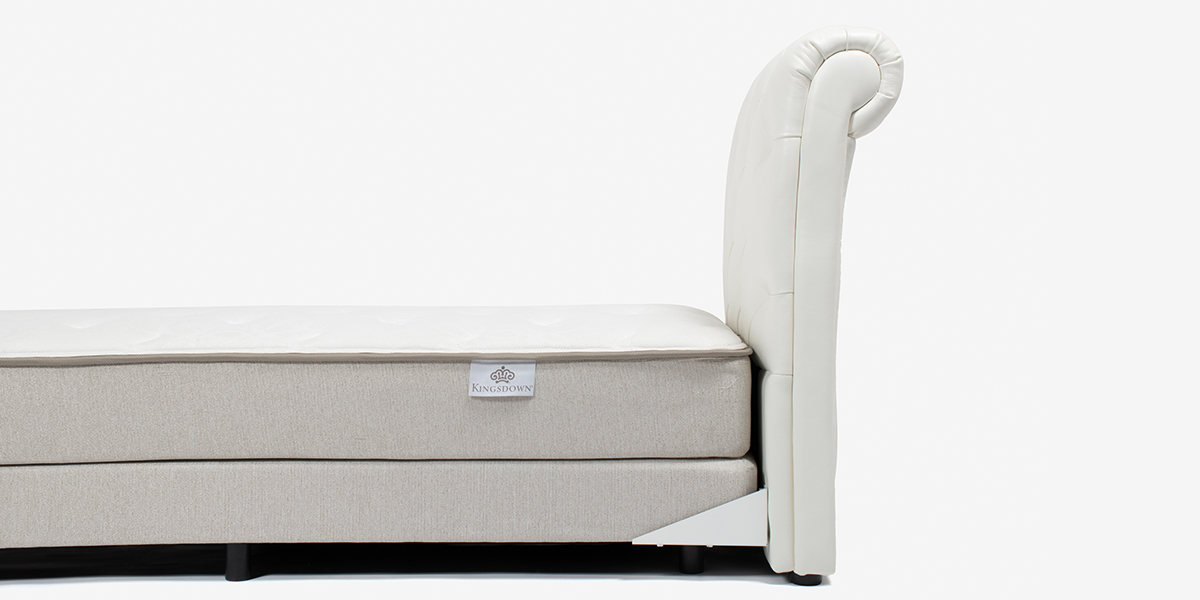 ホワイトでまとめるコーディネートも本革の素材感がアクセントになり、上品な印象のベッドルームを演出します。※画像はシングルサイズです。※マットレスとボトムマットレスは別売です。
