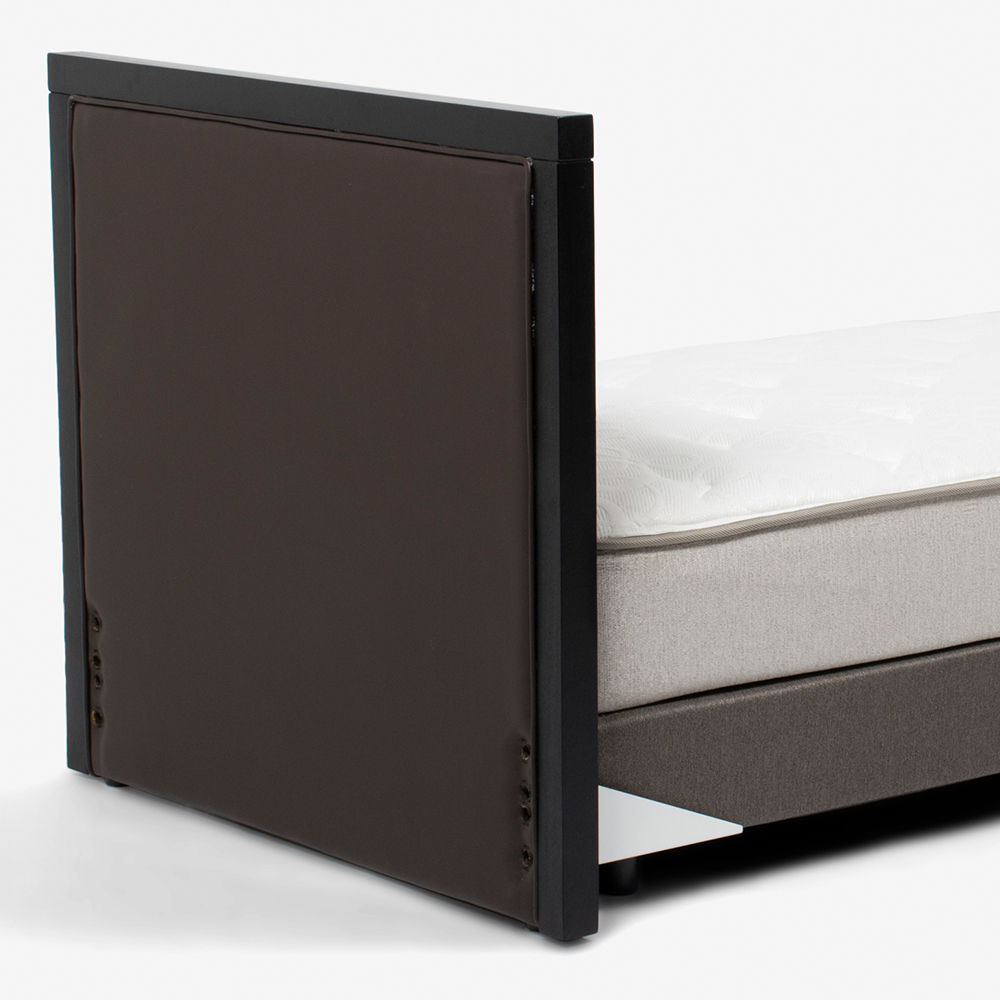 革張りの厚みのあるクッションタイプのヘッドボードを木枠で縁取っています。 ブラウン色が落ちつきある洗練された印象です。 高級感があり贅沢な気分にしてくれ、眠るだけでなくくつろぎスペースとしても最適です。