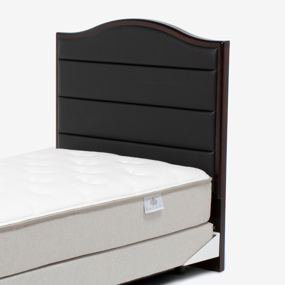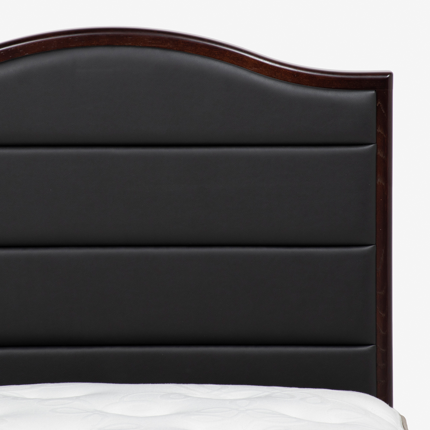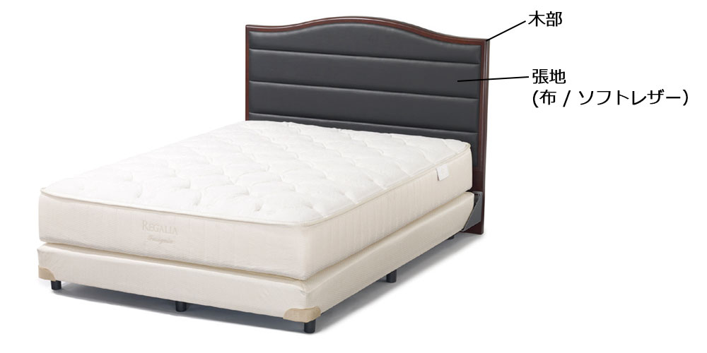 木部の縁取りにソフトレザーでクッションを張込んだヘッドボードは、曲線のフォルムがエレガントで高級感のある寝室を演出します。※画像はダブル(D)サイズを使用しています。