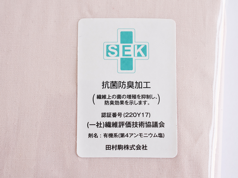 綿100%でシンプルな無地の掛け布団カバーです。ベッドルームをあたたかな雰囲気にしてくれる優しい印象のカラーが魅力です。一般社団法人繊維評価技術協議会に認証されたSEKマーク(抗菌防臭加工)付きです。