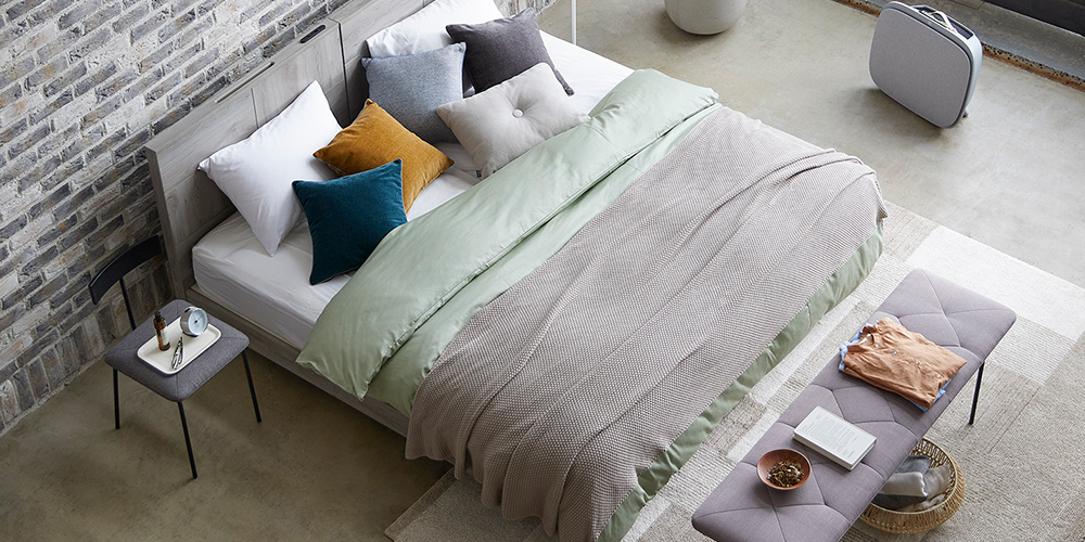 深みのある落ち着いたカラーは同じシリーズはもちろん、アクセントとなる色や柄の寝具などとも合わせやすく、様々な組み合わせをお楽しみいただけます。ナタリアシリーズにはおそろいの枕カバーもご用意しております。※画像はコーディネートイメージです。