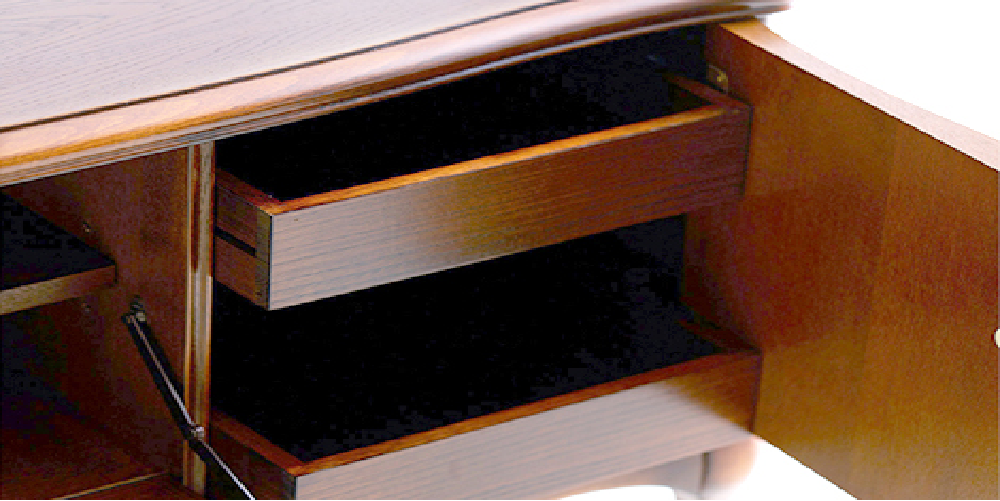 細かな収納ができる小引出し付きで、リモコンやAV機器の説明書などの収納に便利です。
