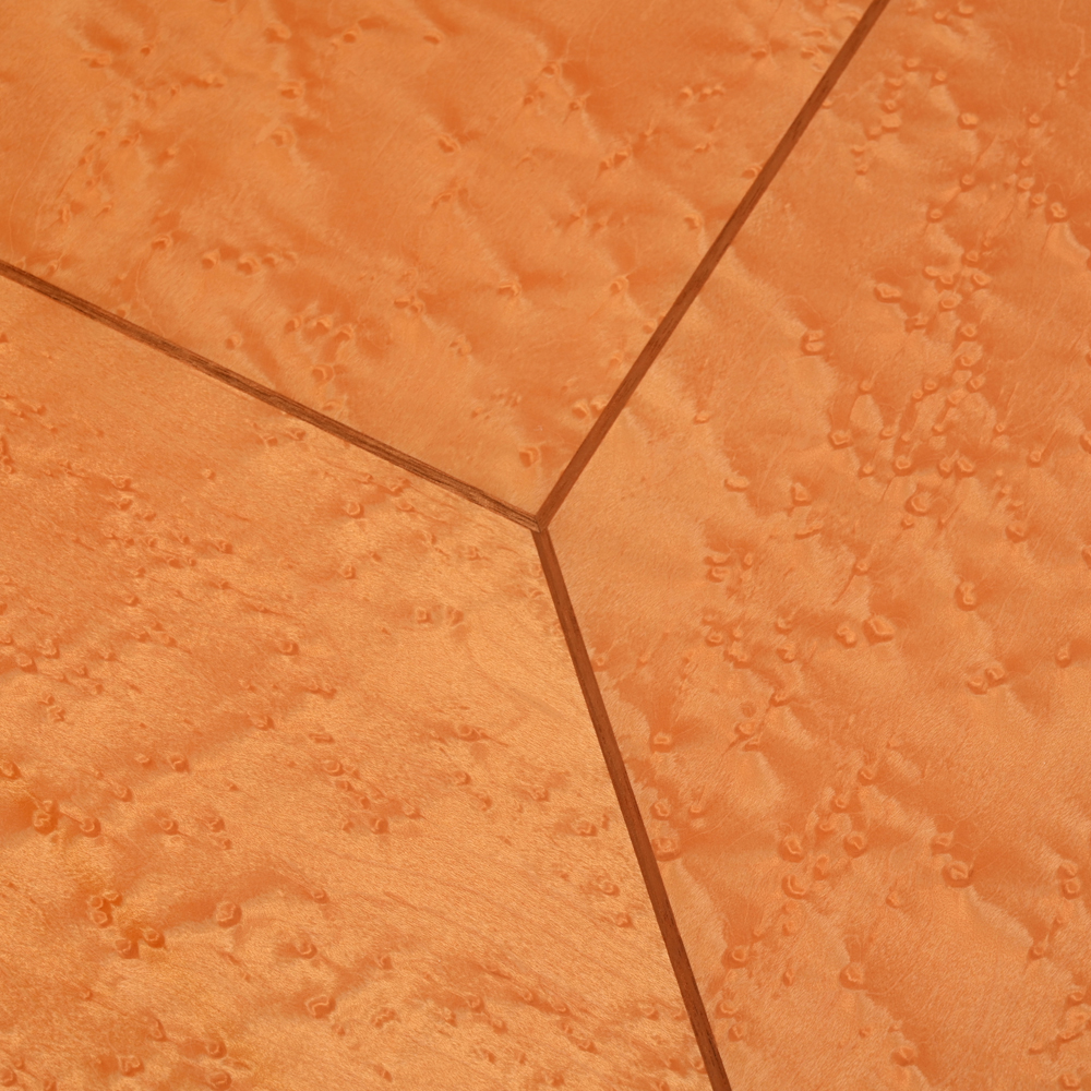 直線を主体とした端正なデザインと高度な技術を要するマス張りで装飾さえた天板。艶やかなコーティングが素材の美しさを引き立てます。