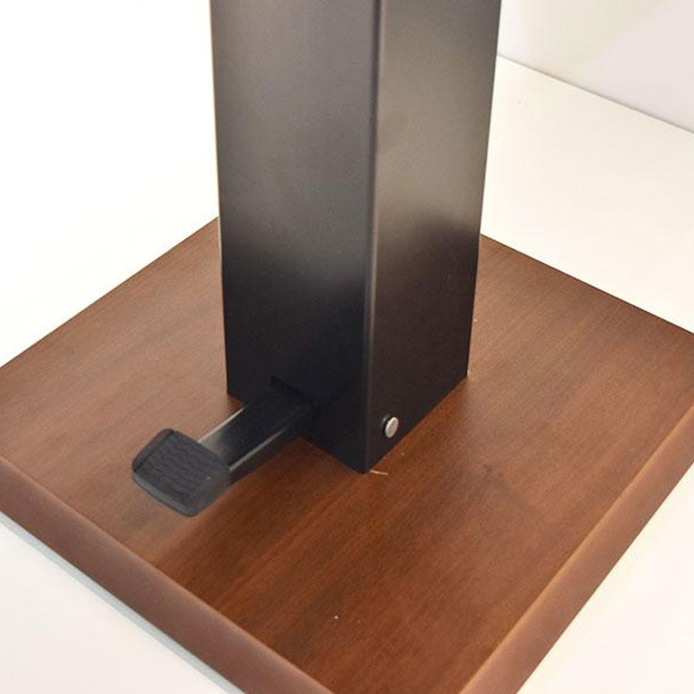 操作は脚元のペダルを踏みながら天板を上下するだけです。少しの力でも楽に操作ができます。