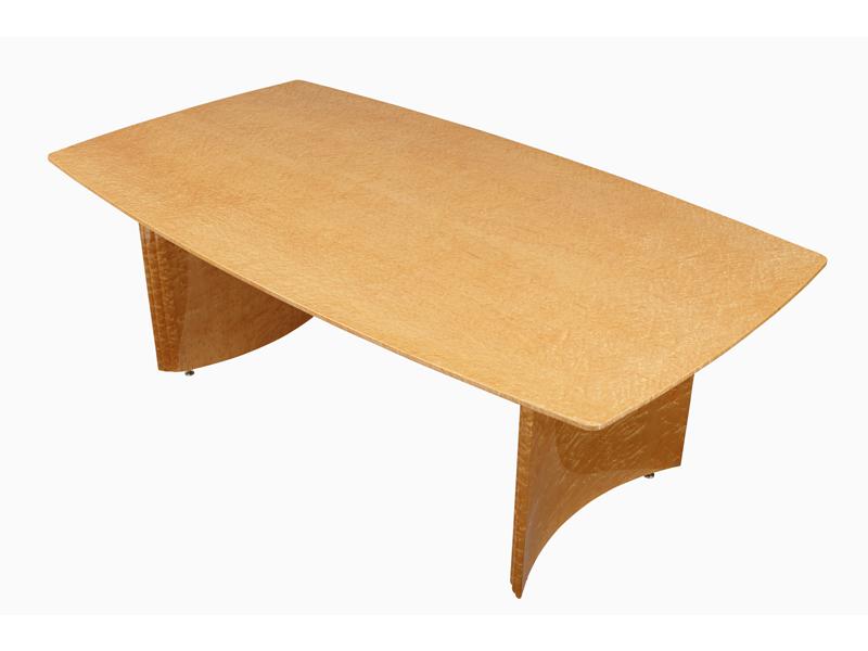 希少な杢目であるバーズアイメープルを洗練されたデザインで表現したダイニングテーブルです。バーズアイメープルはハードメープルの中にごくまれに発生するもので、しかも表面近くの1/5ほどでしか取れない大変貴重な材です。カナダ・アメリカの五大湖周辺で育った希少なバーズアイのうち、100本に1本ほどしかない最高級材を使用し、高品質な家具を作り出しています。