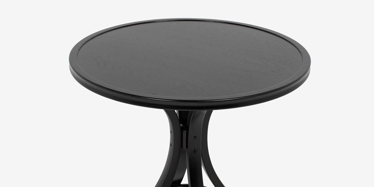 優美な曲げ木の曲線が目を惹くラウンドテーブル。天板を囲う縁の部分にブナ材を曲げて作られており、耐久性にも優れています。