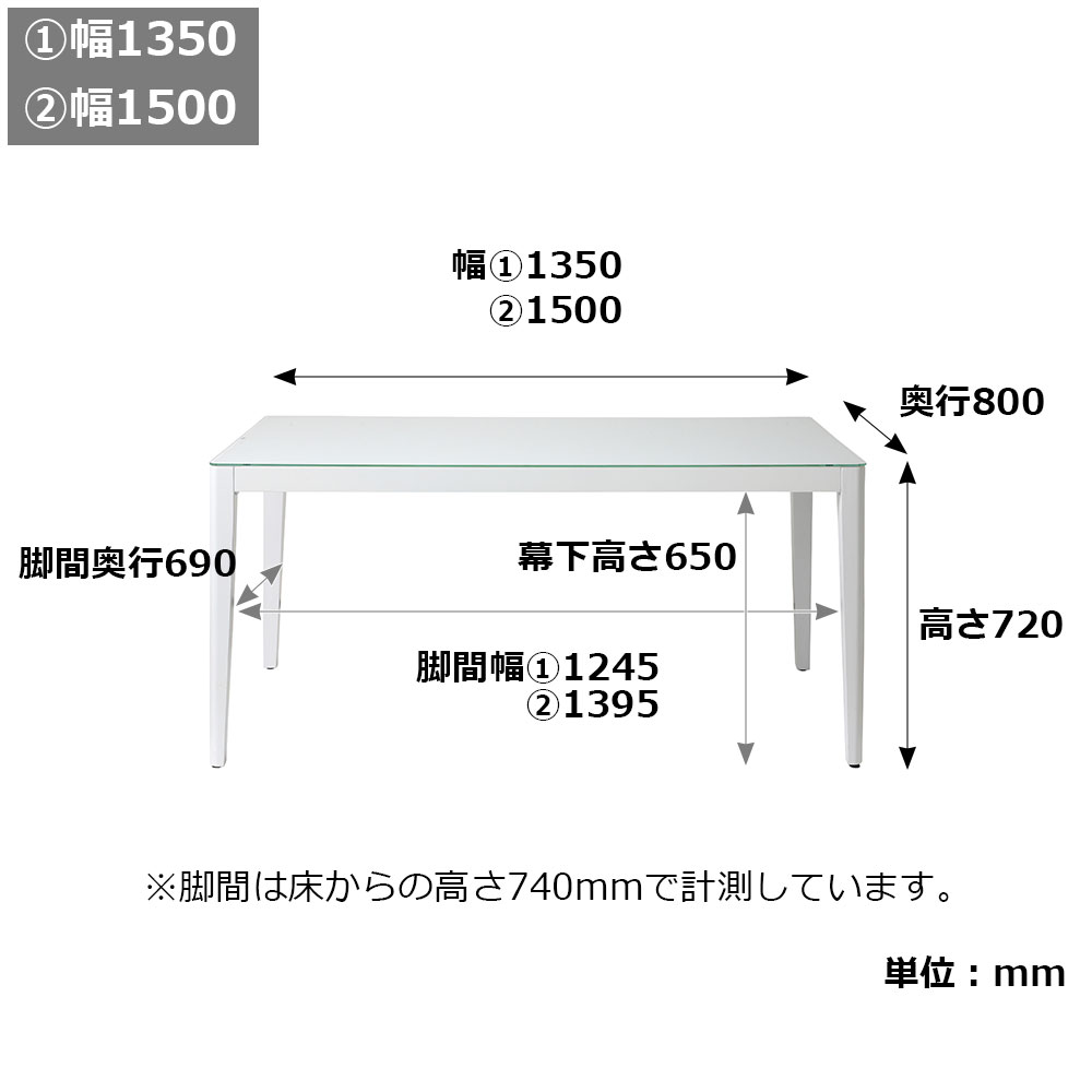 ダイニングテーブル「ウィズ」ガラス天板 ホワイト色
