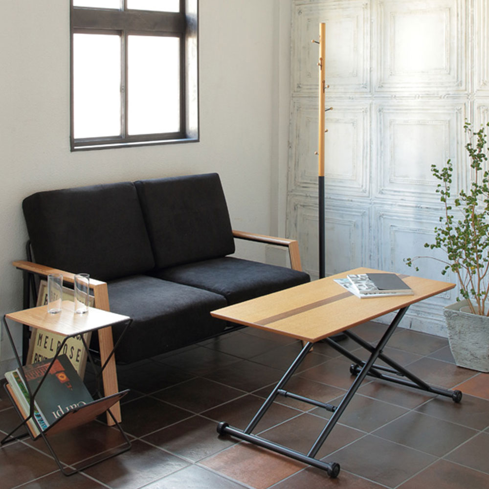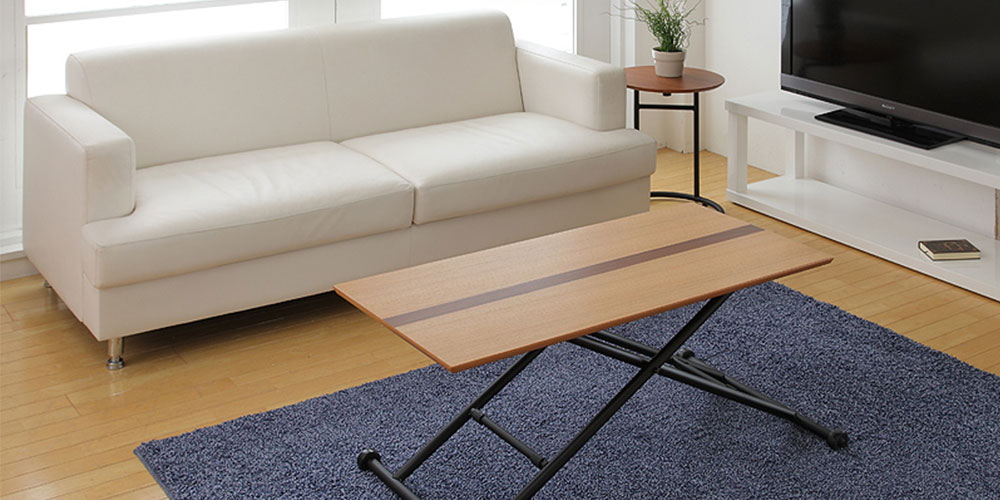 木製家具の持つ独特の「癒しのオーラ」漂う木製リフティングテーブル。協調性ある柔らかなデザインが寛ぎ空間を作ります。ガス圧シリンダーでテーブルの高さも自在に調節出来ます。