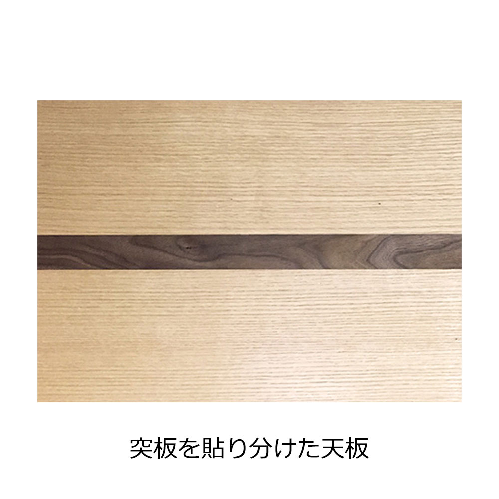 天板はオーク材突板とウォールナット材突板を貼り分けたデザイン。