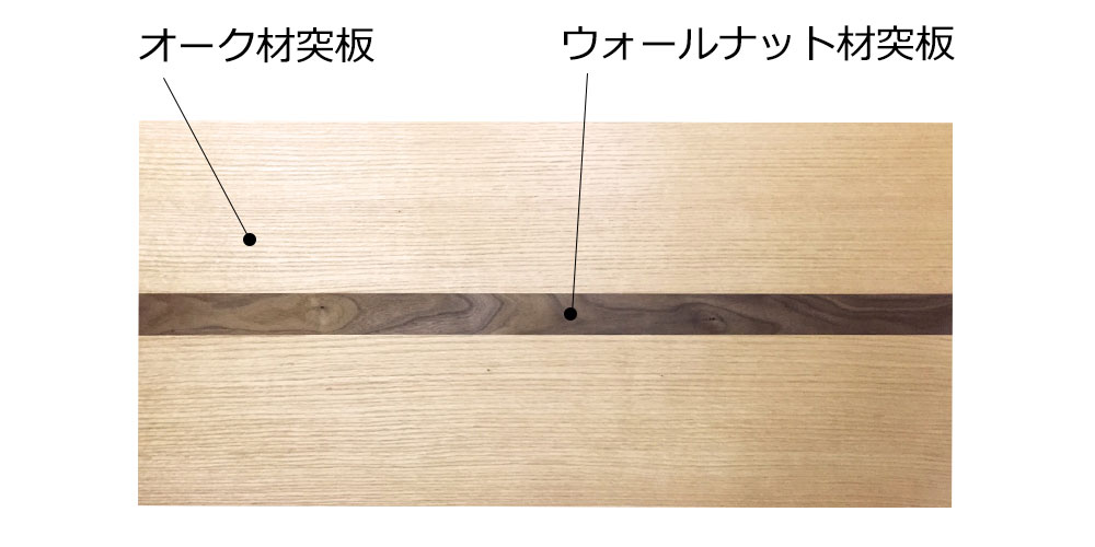天板:オーク材(天板広面)、ウォールナット材(天板狭面)
