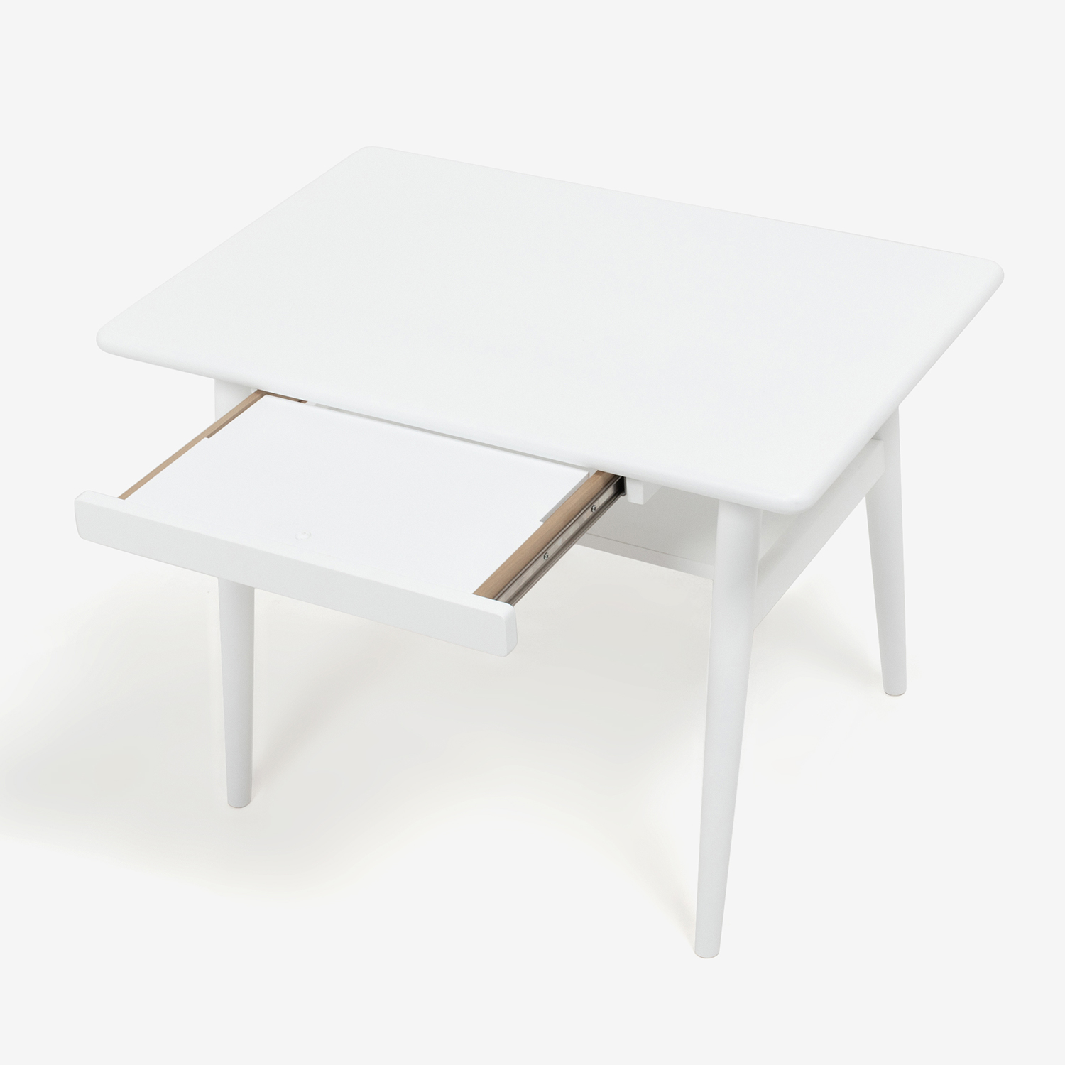 熟練した職人の技術に支えらえ100年以上の歴史を持つ「秋田木工」による小振りなLDテーブル。 引出しと棚が付いているのが嬉しいポイント。