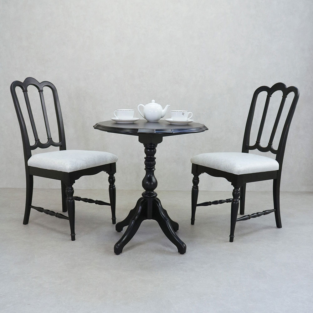 アンバーブラックカラーにシャビーシック仕上げを施した、おしゃれでスタイリッシュなレトロアンティーク調のティーテーブルです。コンパクトなサイズで置く場所を選びません。ティーテーブルとしてだけではなく、サイドテーブルや花台としてもおすすめです。※画像はイメージです。