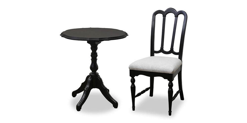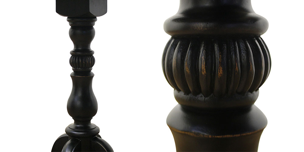 所どころには使い込まれた雰囲気のシャビーシック仕上げを施しています。ターンドレッグ(ろくろ脚)の装飾がエレガントです。