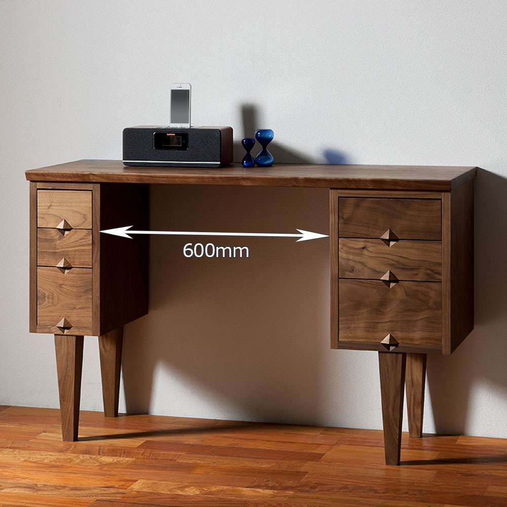 天板や前板にウォールナット無垢材を使用しており、美しい天然木の風合いを感じられるデスクです。左右に幅の異なる引出しを備えており、デスク回りのものを分類して収納することが出来ます。奥行き40cmとコンパクトなサイズとインテリアにマッチするデザインでリビングや寝室にもおすすめなデスクです。